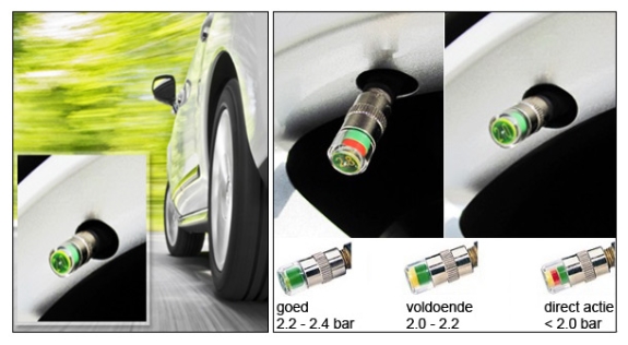 Super handige ventieldopjes die direct aangeven of de bandenspanning in orde is. Kijk makkelijk in 1 blik of de bandenspanning in orde is of dat deze te laag is.