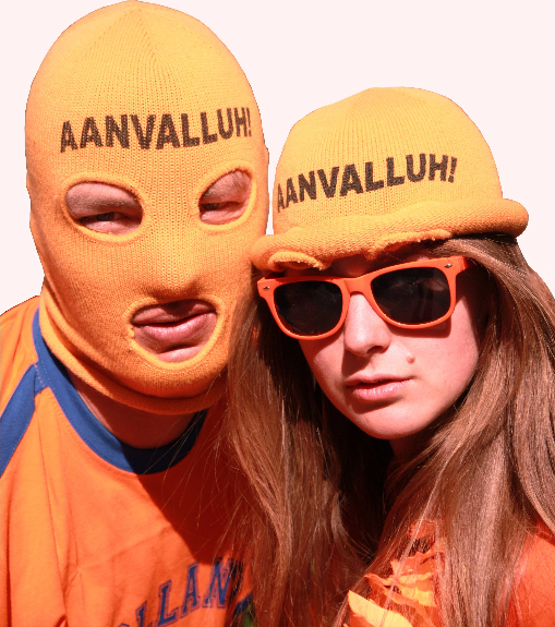Foto 1:Koningsdag topper oranje bivakmuts aanvalluh