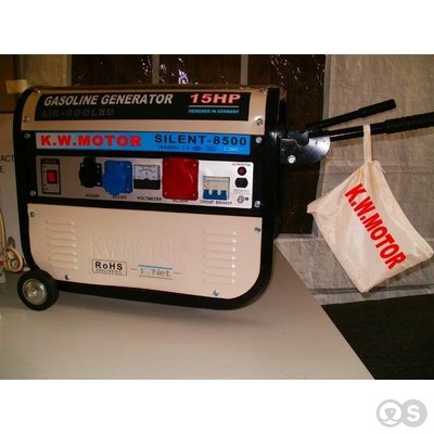 Specificaties: Merk: Motor GX 340 KW Motors Sleutel Start & Trekkoord 1 cilinder 4-takt luchtgekoeld. Houd in dat het een open aggregaat is en dat de aggregaat niet oververhit kan worden en lange draaiuren kan maken Zowel Pull Als Sleutel Start 1x uitgang 12 Volt Adapter aansluiting 1x uitgang 110 Volt 1x uitgang 220/230 volt. 1x uitgang 380/400 volt. Krachtstroom Adapter aansluiting Avr Regeling Voltmeter. Met Olie alarm systeem(als het carter olie bijna op is gaat de motor uit,beveiliging) Tankinhoud 17L. Brandstof euro95. Gewicht aggregaat 40kg. Afmetingen 60x46x44cm. Instructie boekjes. Voorzien van Ce certificaat spanningregeling AVR automatische regeling (Voor de Veiligheid) AC output (kVA) reted 50hz 3.0 60hz 6.5 maximum 50hz 6.5 60hz 6.5 LOOPT GERUISLOOS 49 DECIBEL CONTINU VERMOGEN 7,8 KVA = 7800 Watt PIEK VERMOGEN 8,5 KVA = 8500 Watt Aardlekschakelaar Dc protector CE goedgekeurd Gereedschap voor de onderhoud van de aggregaat en Rubberen stekkers voor de 230 en 380 volt