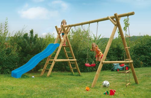 Speeltoestel Antoni robuust grenen model goedgekeurd volgens TÃV/CE EN1171-1:8Compleet geleverd incl. houtpakket rondhout ø10cm, glijbaan TÃV/CE gekeurd blauw, 2 schommels, 1 touwladder, 5 schommelhaken, 4 grondankers, bevestigingsmateriaal en bouwtekening, gekeurd zonder glijbaan.Richtprijs ex btw zolang de voorraad strekt. Verzenden is mogelijk.