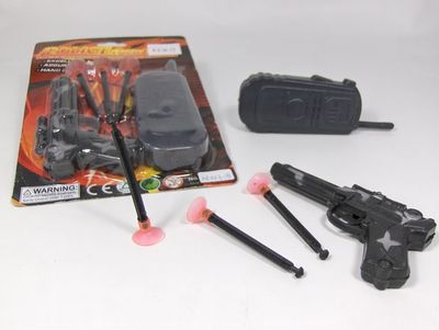 Compleet met walkie talkie en een pistool met zuignappijltjes.