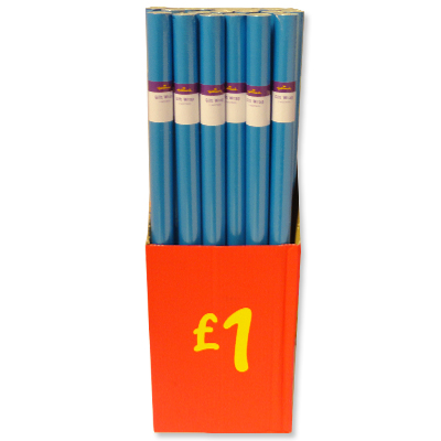 Hallmark display met 24 rollen blauw inpak papier. Afmeting display: 24 x 15,5 x 70,5 cm. Afmeting rol: lengte: 3 meter x breedte: 70,5 cm. Gewicht rol:  148 gram.