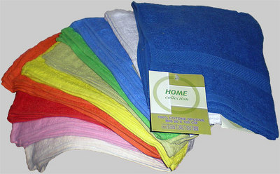Nieuw assortiment met allemaal nieuwe frisse zomerkleuren handdoeken 50x100cm, 400gr, kleurvast er zijn 10 mooie verschillende kleuren verpakt in een verpakking, 100 stuks per doos, prijs 0,90 ex BTW