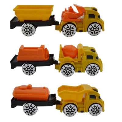 Koker vrachtauto met aanhanger.Het artikel wordt 3 assorti model geleverd.Afmeting koker: hoogte: 19 cm x doorsnee: 6 cm.Gewicht: 66 gram.