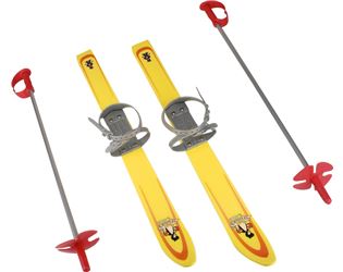 Mini skietjes (van plastic materiaal) te koop aangeboden voor kinderen (t/m ca. 3jaar / maat 27) met aluminium stokken (ca. 65 cm).