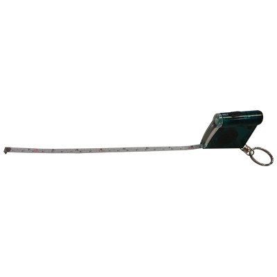 Meetlint in de vorm van een sleutelhanger met lichtje. Circa 50% van de lichtjes functioneert, overige kunnen makkelijk vervangen worden. Afmeting: 6 x 8 x 1,5 cm.