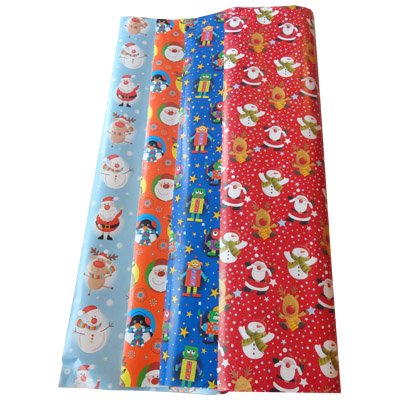 4 ass cadeaupapier kerst. Het cadeaupapier zit verpakt in een display. Afmeting: 2 m x 0.70 m.