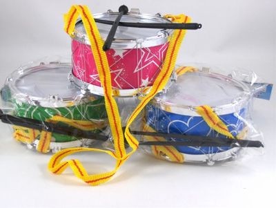 Partij Leuke speelgoed trommels met draagkoord.