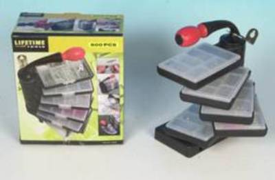 Altijdde juiste schroeven, moeren en ringen bij de hand. In deze set zittenschroeven, moeren, bouten, spijkers en een handige schroevendraaier.Elk assortiment zit apart verpakt in een doorzichtige doos.