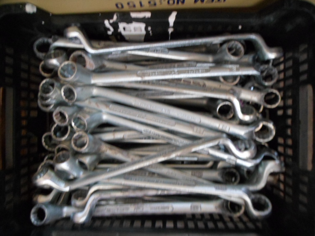 PARTIJ RINGSLEUTELS MAAT 19 & 22 / CHROME VANADIUM SLEUTELS ZIJN NIEUW MAAR ZITTEN BIJ ELKAAR IN EEN KIST EN SOMMIGE ZIJN WAT BESCHADIGD
