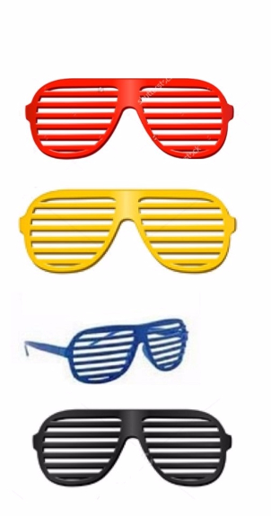 Goedkope Shutter shades ofwel luxeflex bril De grappige zonnebril die met zijn verticale streepjes de zon tegenhoudt. ook erg leuk voor feesten en partijen. In zwart - rood - blauw - paars - geel
