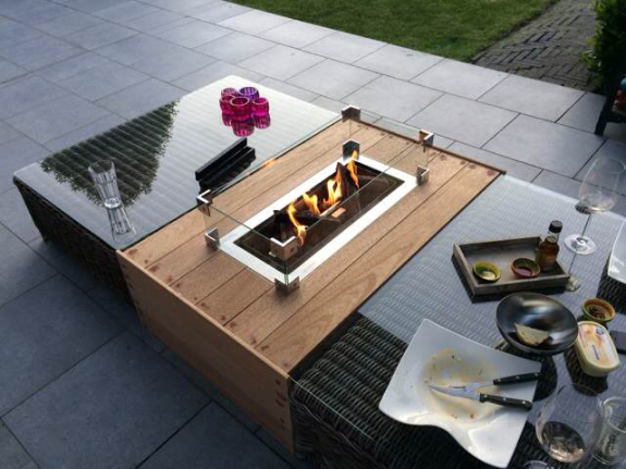 Vuurtafel: Kijk bij aanschaf van een complete vuurtafel niet alleen naar de tafel, maar heel belangrijk is de veiligheid, kwaliteit, design, geluidloosheid en het vlammenspel van de inbouw haard !