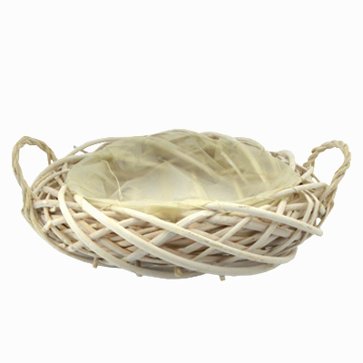 Wit gevlochten bloemenmandje:Afmeting: 38 x 28 x 10 cm (incl. handvaten).Gewicht: 358 gram.