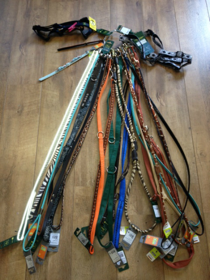 Het betreft een partij van 50.000 riemen, tuigen en halsbanden gesorteerd en verpakt in series.