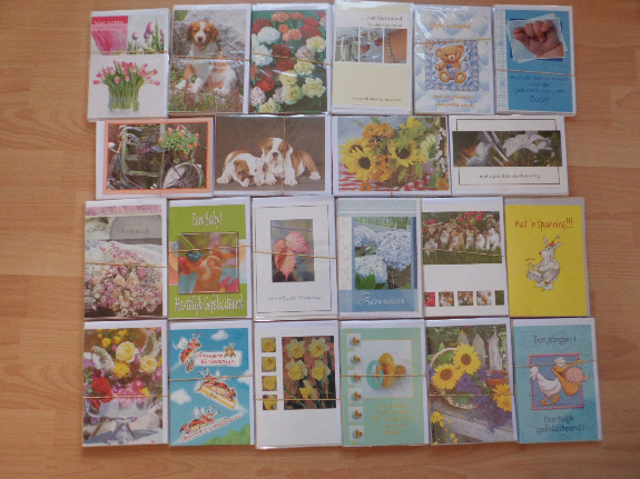 Mix van allerlei thema's en motieven, waaronder: - verjaardag - geboorte - beterschap - huwelijk - deelneming - blanco ... en nog veel meer.