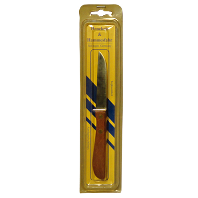 Roestvrij stalen aardappelschilmes. Dit mes met echt houten handgreep NIET in de vaatwasser reinigen. Afmeting verpakking: 6 x 1,5 x 26,5 cm. Afmeting schilmes: 2 x 1 x 18 cm. Gewicht: 36 gram.