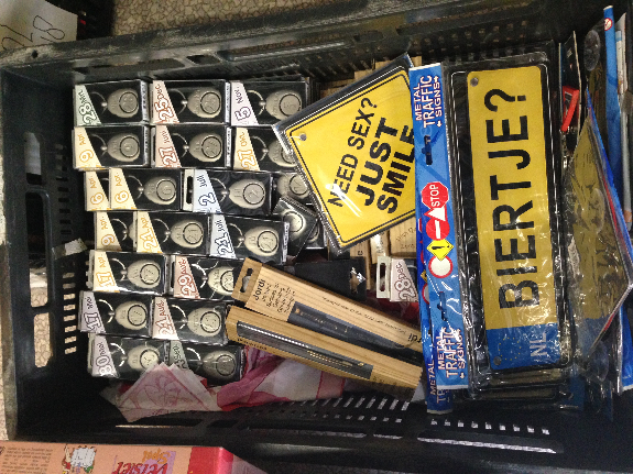 Partij breed en redelijk compleet. oa, glaswerk,video wenskaarten,sleutelhangers,Feyenoord/Ado, Playboy, bekers en nog veel meer. (totaal 18 sligrokratten)