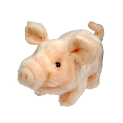 Leuk roze kleurig pluche varken die kan lopen, stopt, beweegt met de staart en geluid maakt! Het varken zit verpakt in een displaydoosje en werkt op 2 x C batterijen (worden niet meegeleverd). Afmeting doosje: 25 x 13 x 16 cm. Afmeting varken: 22 x 12,5 x 14,5 cm. Gewicht doosje en varken: 446 gram.