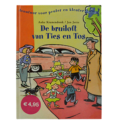 Boek "De bruiloft van Ties en Tos" met vier kaarten. Het boek heeft 25 bladzijden. Het artikel is voor geprijsd voor € 4,95. Afmeting boek: 19 x 0,8 x 26 cm. Gewicht: 268 gram.