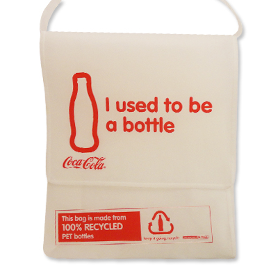 Gerecyclede tassen van het merk Coca Cola. De tassen zijn voorzien van de tekst "I used to be a bottle". Afmeting (exclusief schouder band): 39 x 33 cm. Gewicht: 60 gram.
