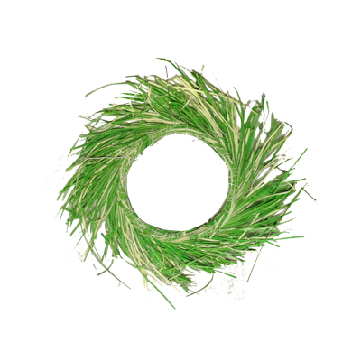 Decoratie krans in de kleur groen met crème.Afmeting: doorsnee: 30 cm.Gewicht: 52 gram.