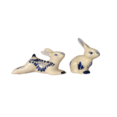 Delfts blauwe decoratie konijnen.De konijnen worden assorti model en maat geleverd.Afmeting liggende konijn: 11 x 3 x 6 cm.Gewicht: 64 gram.