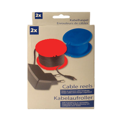 Rode en blauwe kabeloproller per twee verpakt.Afmeting: 6,5 x 5,5 x 3,5 cm.Gewicht: 80 gram.