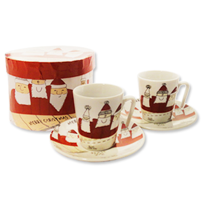 Kerstmis espresso set. Leuke set met kopjes en schoteltjes geschikt voor een espresso. Afmeting doosje : hoogte: 9 cm x doorsnee: 13 cm. Afmeting kopje: hoogte: 6 cm x doorsnee: 5,9 cm. Afmeting schoteltje: hoogte: 2 cm x doorsnee: 11 cm. Gewicht set: 440 gram.