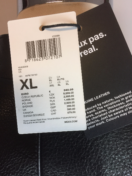 Alle jacks zijn netjes gelabeld met o.a. prijskaartje