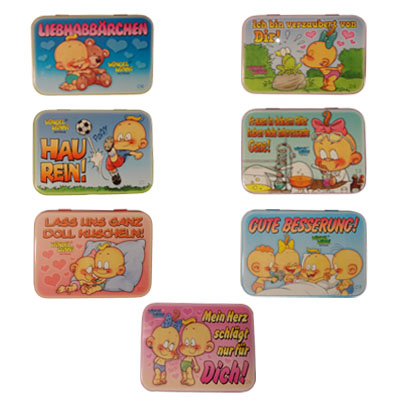 Opbergblikje met leuke prints.De opbergblikjes worden assorti model geleverd.Afmeting: 10 x 7,5 x 2,5 cm.Gewicht: 54 gram.