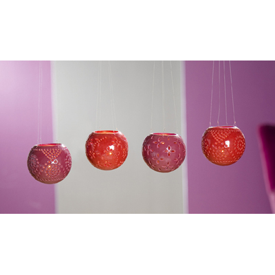 Porselein hangwindlicht 4 ass .Hangwindlichten, 4 verschillende soorten gekleurde waxinelichthouders om op te hangen.Afmeting waxinelichthouder: 10 cm doorsnee x 10 cm hoogte.