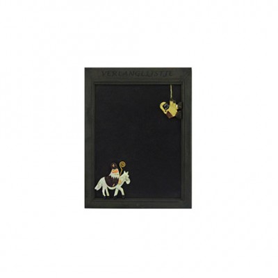 Sinterklaas verlanglijstje / krijtbord. Aan de achterkant zit een touw waar je het verlanglijstje aan op kan hangen. Afmeting: 21,5 x 1 x 29 cm. Gewicht: 284 gram.
