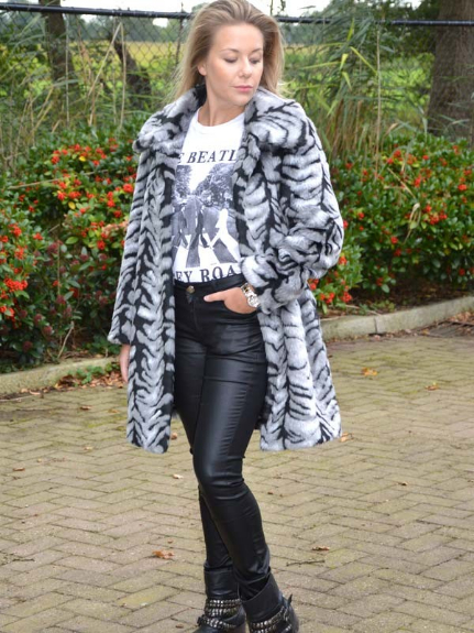 Mooie fake fur jassen met print in de maten S, M, L en XL