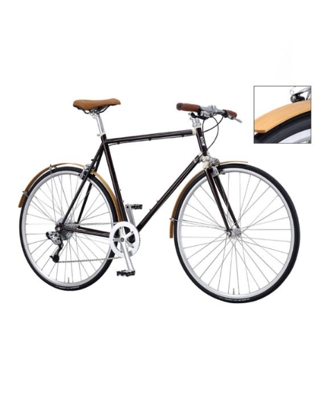 The Maze Eight has been designed as the do it all commuter bike. A high quality chromo frameset gives the bike a supple and comfortable ride. 8 Speed gearing by Sram and a lightweight wheelset makes any ride a pleasure. The full Bamboo fenderset gives the bike a unique look while keeping you clean.