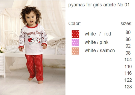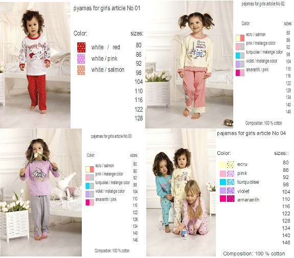 Groothandel Pyama sets meisje, partij van 261 stuks.