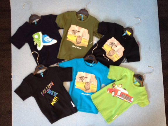 Babyshirts met korte mouw, van 220 gr/m2 bio-katoen, interlock, mooie en zachte kwaliteit. Maat 74/80m, verschillende designs
