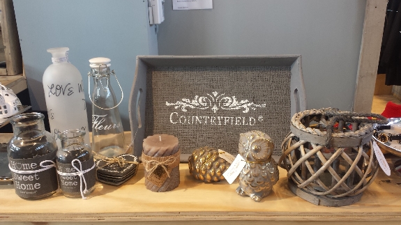 5 x tekstborden 18 x polo windlicht 12 x home sweet home groot 16 x home sweet home klein 5 x kaars 6 x etagiere klein 4 x etagiere medium 4 x etagiere groot 6 x dienblad 8 x onderzetters 19 x fleur flesjes 10 x do what you love fles 1 x sweets + cookies pot 2 x uil 11 x lantaarn 30 x denneappel 2 x witte broodplank 26 x witte huisjes