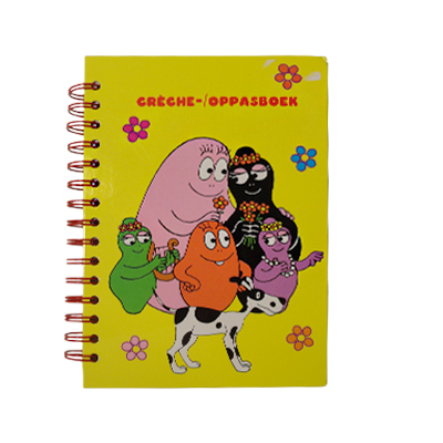 Crèche-/ oppasboek van Barbapapa.In het boek zitten de kopjes: mededelingen, datum, eten + drinken, slapen en bijzonderheden.Afmeting: 16,5 x 1,5 x 22 cm.Gewicht: 342 gram.