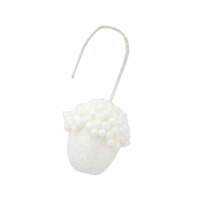 Witte decoratie eikel met glitters.Afmeting (exclusief steel): hoogte: 5,5 cm x doorsnee: 5 cm. Gewicht: 4 gram.