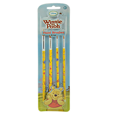 Winnie the Pooh verfkwasten.In een verpakking zitten 4 verfkwasten in verschillende diktes.Afmeting verpakking: 8 x 1 x 34 cm. Gewicht: 48 gram.