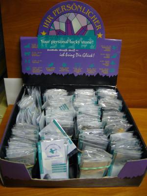 Een geluksbrenger in de vorm van een kleine (edel)steen inclusief een kaartje met een beschrijving van de steen en waar
