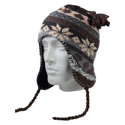 Bruine/beige winter muts. De mutsen zijn ook verkrijgbaar in de kleuren zwart/grijs, rood/grijs en blauw/grijs. Maat: 1 maat.