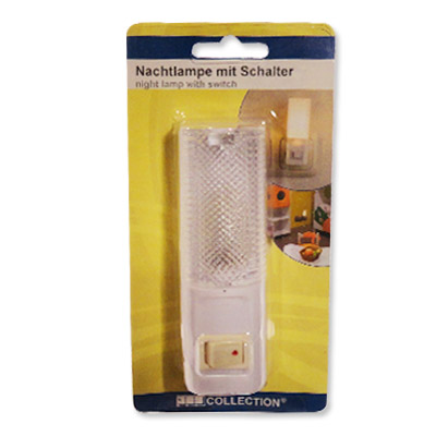 Nachtlampje met schakelaar. Leuk nacht lampje met aan en uit knop. Afmeting kaart: 18 x 9 x 5 cm.Gewicht: 66 gram.