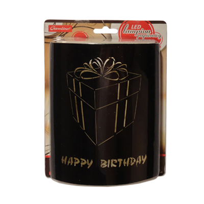 Papieren lampion met de tekst HAPPY BIRTHDAY. Als je lampion aanzet verandert het lampje van kleur (zie foto). Afmeting verpakking: 16 x 5,5 x 20 cm. Afmeting lampion: 14 x 5 x 16 cm. Gewicht: 56 gram.