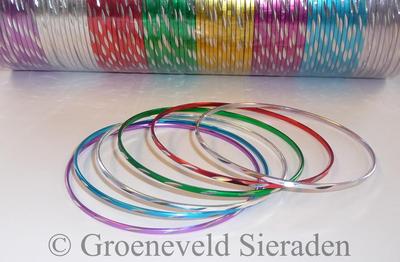 Partij van 100 aluminium armbanden in leuke kleuren. Uitermate geschikt voor kinderen.