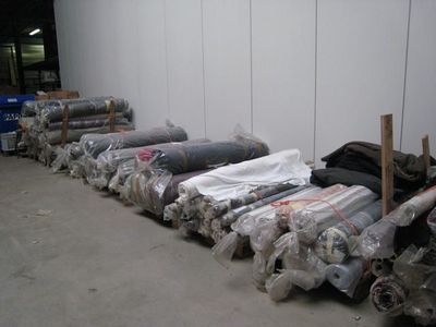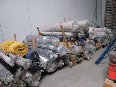 Deze partij stoffen bestaat uit rollen welke nog volledig zijn en rollen waarvan er een gedeelte gebruikt is.