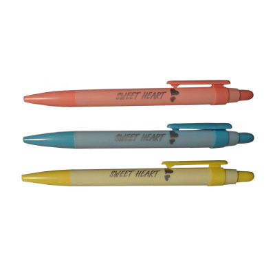 De pennen zitten per 3 verpakt in een plastic verpakking.Op de pennen staat de tekst SWEET HEART.Afmeting pen: hoogte: 14 cm x doorsnee: 1 cm.Gewicht: 24 gram.