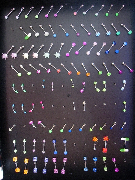 kegels (chirurgisch staal met kristal, acryl in verschillende kleuren en designs 1,2 / 1,6 x 3mm, 4mm, 5mm, 6mm