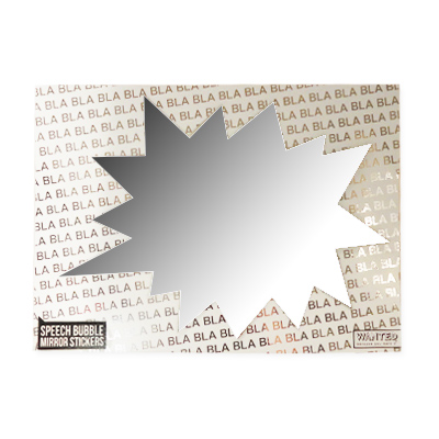 Spiegel speech bubble stickers in verschillende vormen. De speech bubbles worden assorti model geleverd. Afmeting verpakking: 40,4 x 28 cm. Afmeting speech bubble: ca. 35 x 25 cm. Gewicht: 150 gram.