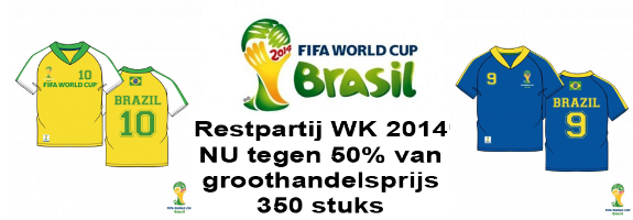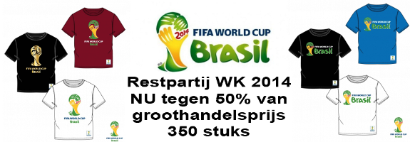 Nu te koop restpartij WK shirts / shorts / caps.